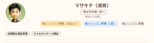 ※2025年5月以前に、モデルの身体に触れて行う性感リアル講座を受講された方は受講済みとなります。(オイルマッサージ及び3人以上で行った集団講習会を除く)