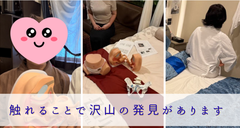 実技では、モデルさんの身体に触れながら、触れ方の強さや手の動かし方、スピードなどを具体的に学びました。感度の高いモデルさんの反応はリアルで、上手くできたときの反応はとても嬉しく、自信にもつながりました。